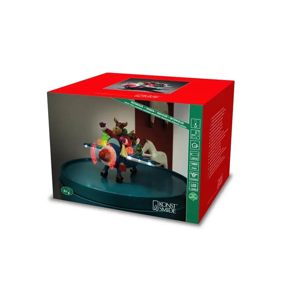 LED Szenerie „Rentier im Flugzeug“, mit Animation,