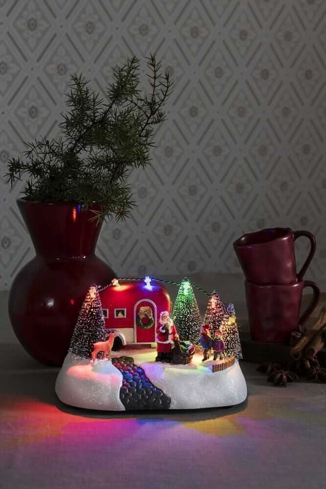Santa’s Wohnwagen, 6 bunte Dioden, batteriebetrieben, 3x AA, nicht im Lieferumfang.