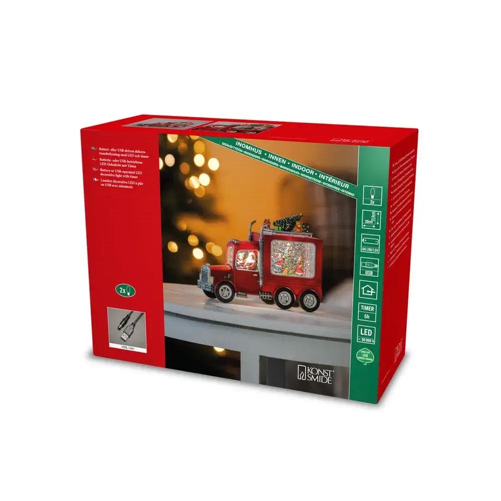 Szene wird beleuchtet, mit autom. Glitzerwirbel. Batteriebetrieben 3x AA, nicht im Lieferumfang, USB inklusive.